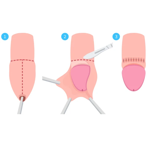 Tratamento de lesões e excesso de tecido no prepúcio.